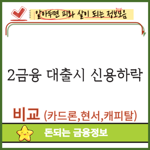 대출을 고민할 때 가장 많이 걱정하는 부분은 바로 신용점수 하락입니다. 특히 저축은행 신용대출, 카드론, 캐피탈 대출, 현금서비스는 모두 2금융권 또는 단기 신용대출로 분류되기 때문에 신용점수에 미치는 영향이 다를 수 있습니다.