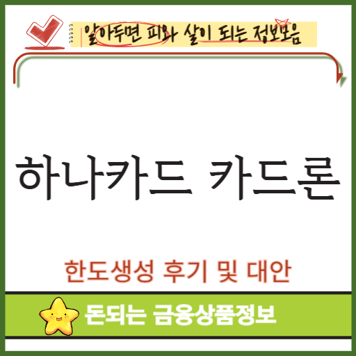 핵심은 하나카드 카드론 한도생성 후기 및 대안 내용을 바탕으로 본인의 금융 라이프 스타일을 점검하는 것입니다.